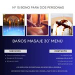 - Circuito de baños árabes, en cueva con una duración de 1h y 45 minutos a través de 3 Aljibes a distintas temperaturas, hidromasaje, chorros lumbares ,cascada y baño de vapor.Para el acceso a la sala, es obligatorio el uso de gorro y chanclas , si no dispone de ellas se pueden adquirir en recepción, también se recomienda traer toalla.